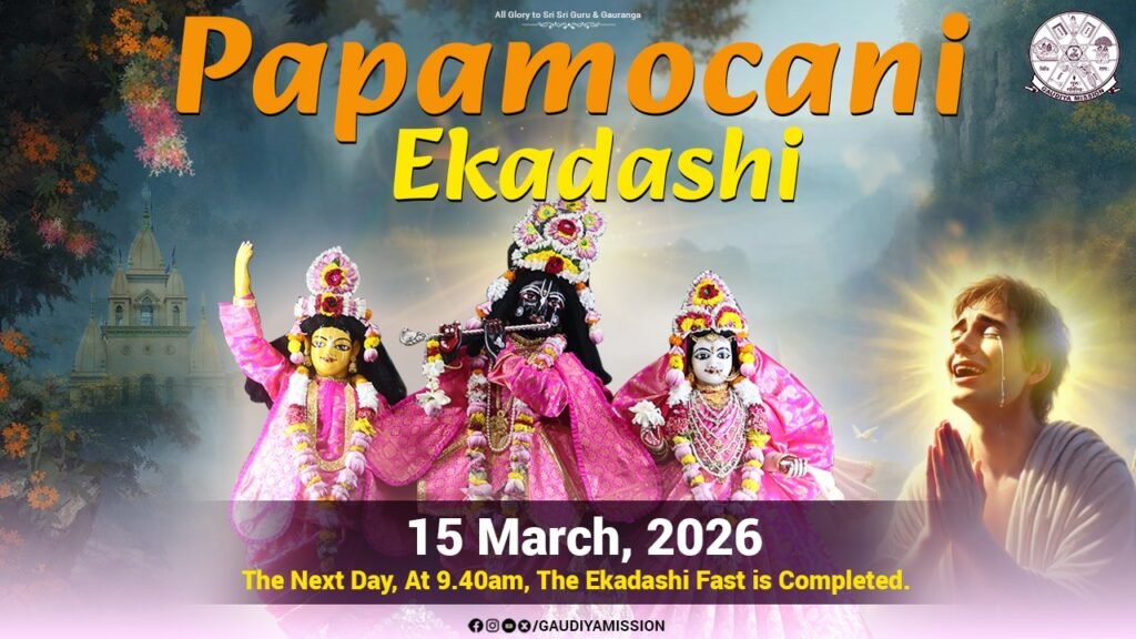 শ্রী সনাতন বললেন—হে নারদ, তুমি সর্ব্বদাই লোকহিতে নিরত, তজ্জন্য তোমার প্রশ্নগুলিও সকলের পরম সুখদায়ক। কৃষ্ণপক্ষের ও শুক্লপক্ষের উভয়পক্ষের একাদশী সমূহ অবশ্য করণীয়। অধুনা একাদশী ব্রত করণীয় বিধিসকল বলছি শ্রবণ কর। একাদশী ব্রতোৎসব উদযাপনকারী দশমী দিবসের অপরাহ্নে অধিবাস মণ্ডপ, কদলী স্তম্ভ আরোপণ, আম্রপত্রাদি তোরণ, মঙ্গলঘট স্থাপন, সন্ধ্যাস্নান, নববস্ত্রাদি ধারণ, দ্বাদশ অঙ্গে তিলক রচনা ও বৈষ্ণব আমন্ত্রণ, সন্ধ্যাকালোচিত শ্রীবিষ্ণু অর্চ্চন ও নামসংকীর্ত্তন করবে। অতঃপর মঙ্গল অধিবাস সঙ্কীৰ্ত্তন। মঙ্গল অধিবাসান্তে বৈষ্ণবগণকে প্রসাদ দান, ব্রতকারী উপবাসী থাকবেন, এরূপে দশমী দিবসের রজনীর করণীয় সমাপ্ত করবে। চৈত্রকৃষ্ণপক্ষে পাপমোচনী একাদশী ব্রত। শ্রীগোবিন্দের অর্চ্চন, প্রাতঃস্নান, ধৌতবস্ত্র পরিধান, দ্বাদশ অঙ্গে তিলক, আচমন ‘ওঁ শ্রী বিষ্ণু ওঁ শ্রী বিষ্ণু ওঁ শ্রী বিষ্ণু’ তিনবার বলবার পর সংকল্প বাক্য উচ্চারণ করবে, অনন্তর নমস্কারপূর্বক “ওঁ নমো ভগবতে বাসুদেবায়” এই মন্ত্রে আসন, পাদ্য, অঘ্য, আচমন, মধুপর্ক, তৈল, স্নানোদক, বস্ত্র, উপবীত, গন্ধ, পুষ্প, ধূপ, দাপ, নৈবেদ্য, আচমন, তাম্বুল, মাল্য প্রদান পূৰ্ব্বক পূজা করবে ও স্তব পাঠাদি করবে। পঞ্চমৃত— দধি, দুগ্ধ, ঘৃত, মধু ও শর্করা দ্বারা স্নান করাইবে।