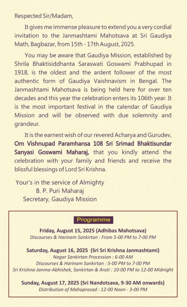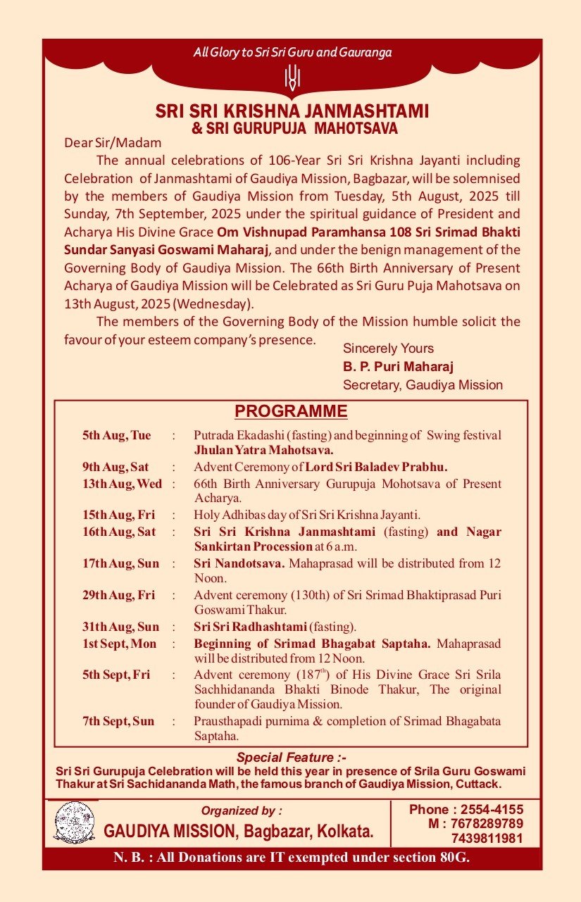 Sri Sri Krishna Janmashtami Mahotsava